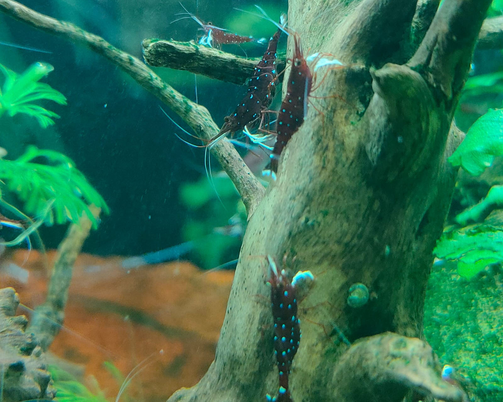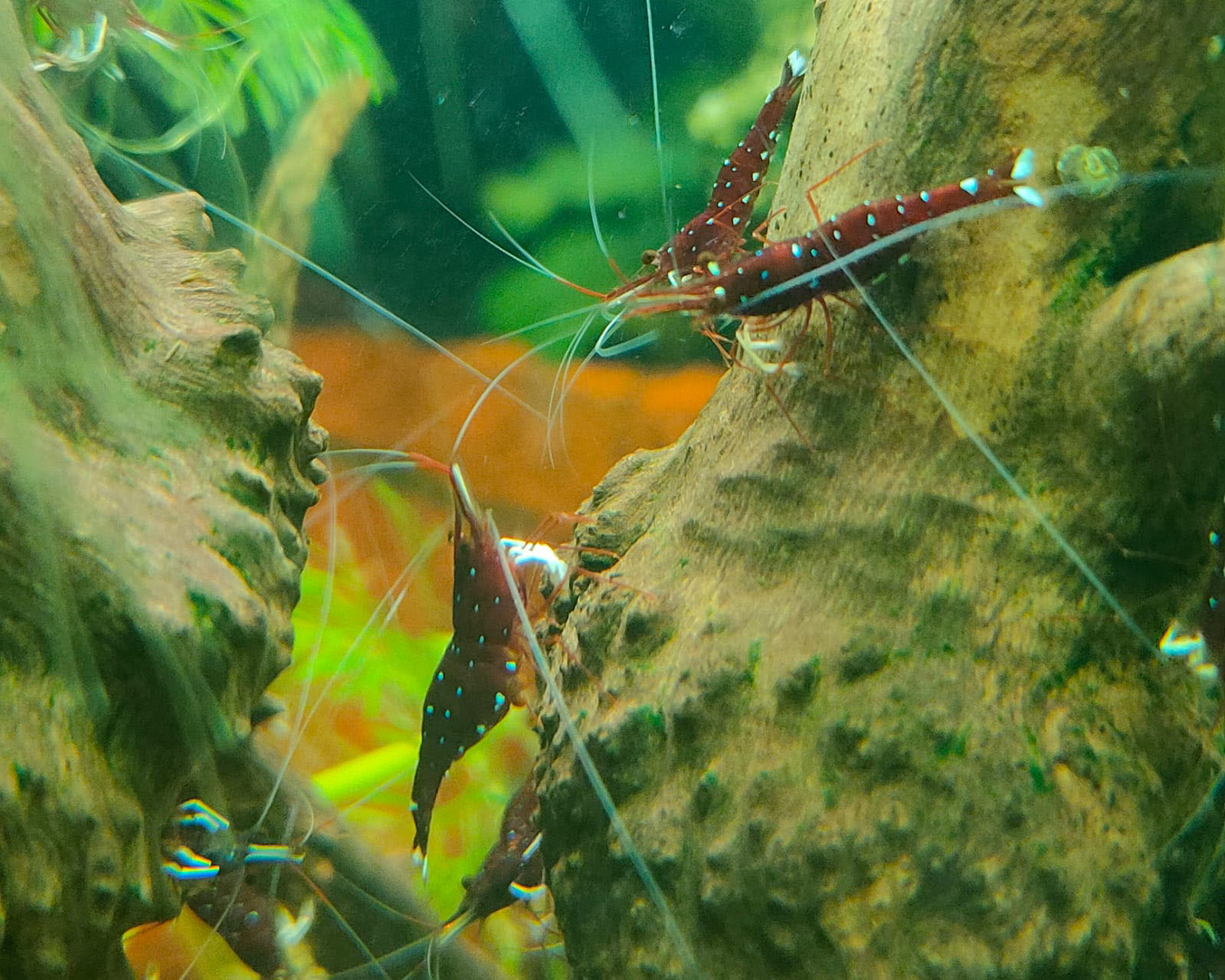 Простая,неприхотливая в содержании креветка.Всего три необходимых условия,осмос,соль 7.5,и температура 28 -30 градусов.150 р .шт.